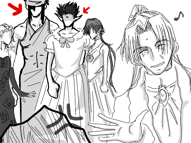 「ふたりとも何を固まってるんですか?ほら、素敵な衣裳を調達してきましたよ♪」