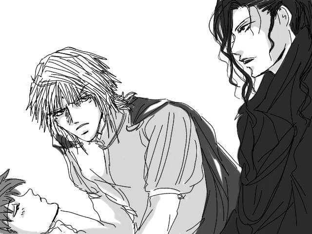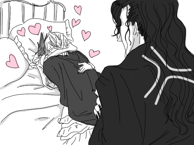 勇敢な王子様は眠っているおうじさまを見下ろし柔らかな頬に片手を添えて