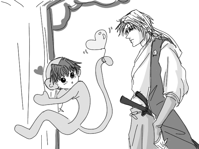 そう言っておさるの少年はしっぽをふりふりして愛想を振りまきます。